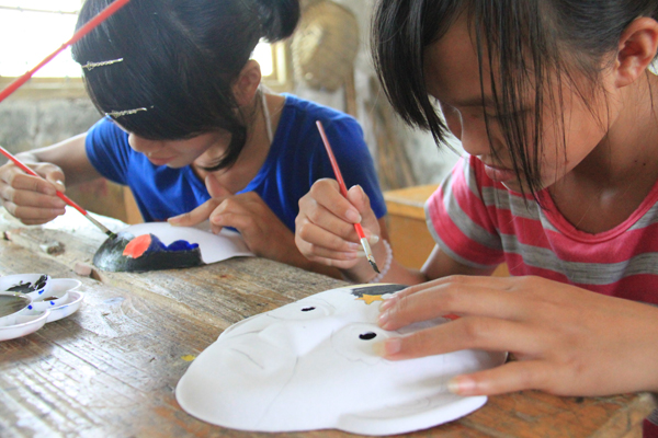 “最初还担心会不会很多人都直接按照黑板上贴的参考版画呢!”NEWS@北乡队的坤坤笑着说。在英文学院2010年暑期“三下乡”实践活动中,坤坤主要负责绘画课的教学工作,与另一名同学商量后认为一个课时很难让学生学会很多绘画技能,“我们比较想培养学生的想象力,所以就想到这个脸谱课。”坤坤介绍道,他们上课前就向学生大致讲解了调色的基本方法,比如黄加蓝会变成绿色系,学生自行创作,发挥想象力,“想怎么画就怎么画!”