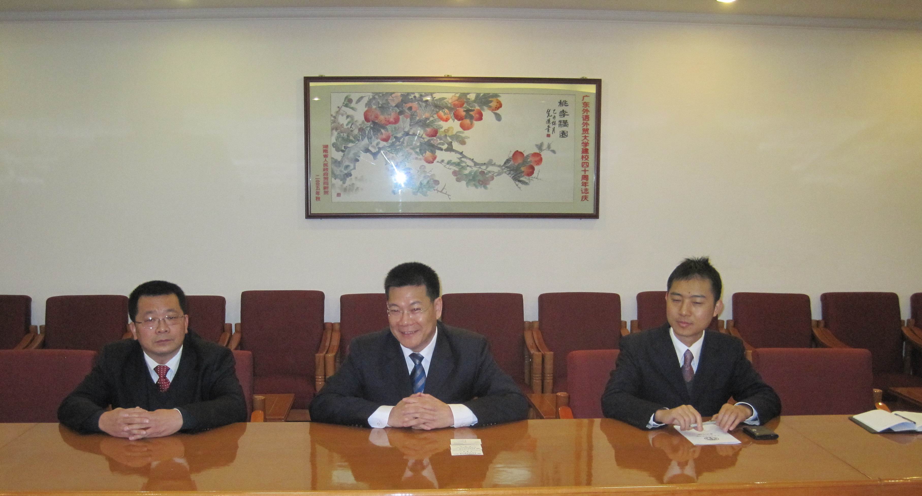 郭宪章对仲伟合的欢迎表示感谢,并对我校的校园风光、学习氛围和MBA等新机构的发展表示赞赏。接着,他简要介绍了德明财经科技大学的概况。该校于1965年成立,2007年升制为大学,成为台湾地区第一所财经科技大学。现有学生8000余名,共有财金、资讯和管理三个学院,并设有4个研究所。郭宪章希望两校能在学生交换、暑期夏令营和专题文化访问团等方面进行合作,促进台湾和大陆地区的交流。