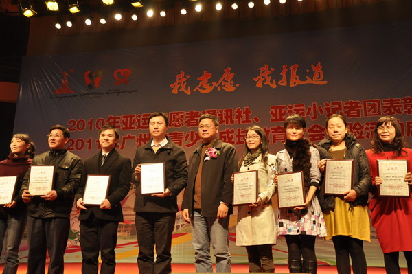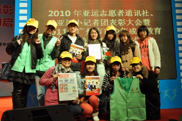 本网讯 1月9日下午,2010年亚运志愿者通讯社、亚运小记者团表彰大会在广东中医药大学学生活动中心隆重举行。我校荣获“十佳亚运志愿者通讯社分社”荣誉称号,此外龙素云等28名同学被评为“亚运志愿者通讯社优秀社员”。