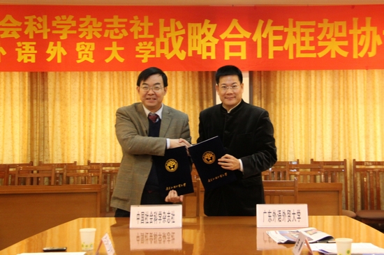 本网讯 12月28日上午,中国社会科学杂志社与广东外语外贸大学战略合作框架协议签字仪式在我校行政楼第二会议室举行。中国社会科学报杂志社副总编辑王利民、广东记者站站长冯建华、编辑记者翟江玲,我校校长仲伟合、副校长石佑启、科研处处长阳爱民以及广东国际战略研究院秘书长李青出席了签字仪式。签字仪式由石佑启主持。