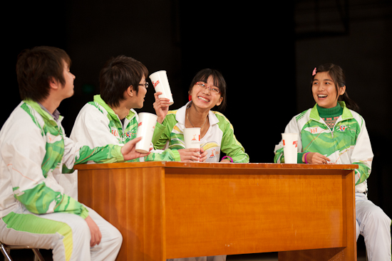 会上,广外志愿者们以情景剧的方式生动地再现了他们酸甜苦辣的亚运生活,重温那段互相鼓励、战胜挫败的志愿时光;场馆的工作人员代表也着上“工作服”,情景从志愿者协调运动员退场到应对为追星不顾秩序的观众;从承受委屈到乐观安慰自己,展现了志愿者所受的苦。而接下来的“T台秀”则展现了优秀工作人员的时尚一面,引发台下阵阵热烈的欢呼。