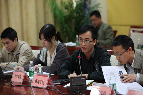 随后的经验交流中,各党支部代表踊跃发言。现场气氛异常热烈,将本次座谈会推向高潮。管理学院物流072党支部一马当先,向大家介绍了该院开展的“做一个有思想的共产党员——读书﹒分享”活动的初衷、过程与经验。西语学院的代表也不甘示弱,阐释了其结合自身特色确立的党性认识提高和专业学习相互相长的方针,并列举实例展示他们的活动成果。