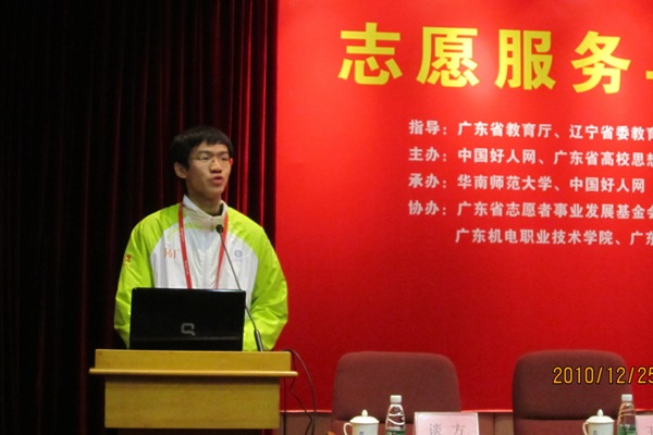 我校志愿者代表陈俊彦发言