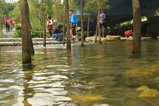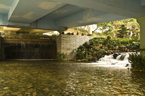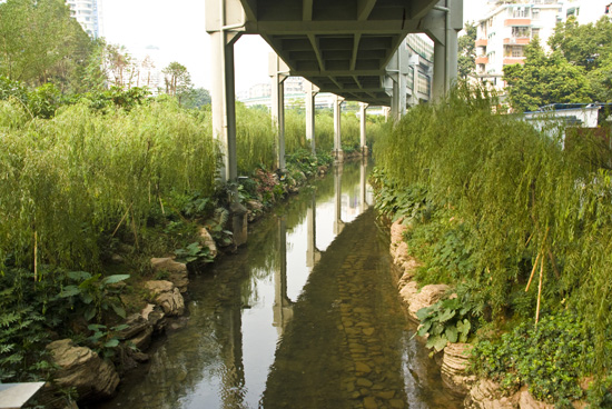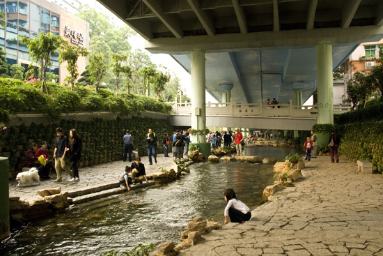 近两年,受惠于市政府河涌整治工程,以及沿岸的“被拆迁”居民的大力配合,东濠涌面貌焕然一新。绿树成荫、花团锦簇、清水粼粼、瀑布飞溅……一派生机盎然的景象。富有岭南特色的小桥流水,沿途闲逸舒适的绿道,犹如奇迹般出现在广州的繁华闹市区,成为居民一个难得的悠闲之地。
