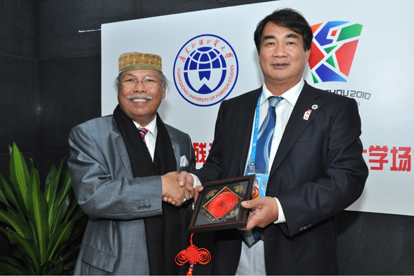 随后,陈子锐代表我校向阿布扎林赠送纪念品并合影留念。