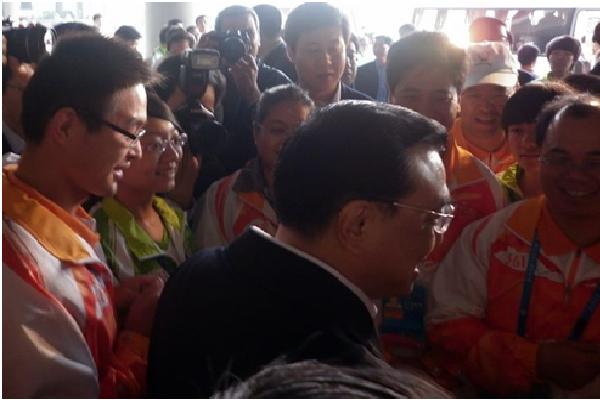 本网讯 12月13日,国务院副总理李克强及随同人员一行参观了亚运城综合体育馆,亲切慰问包括广外志愿者在内的亚运城志愿者。