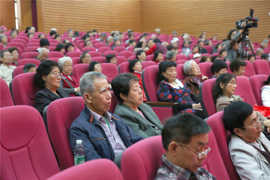 老教工聚精会神地听取通报情况
