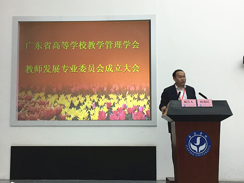 本网讯 12月22日至23日,2016年广东省高校教师教学发展研讨会暨广东省高校教师发展专业委员会成立大会在嘉应学院举行。近60所高校的100多名代表齐聚会议,就广东省高校教师发展工作进行交流。广东省教育厅高教处处长郑文出席本次会议。我校作为广东省高校教师发展专业委员会的发起单位之一,被推选为理事长单位,我校副校长阳爱民被推选为第一届理事长,我校教师发展中心主任孙远雷被推选为常务理事。