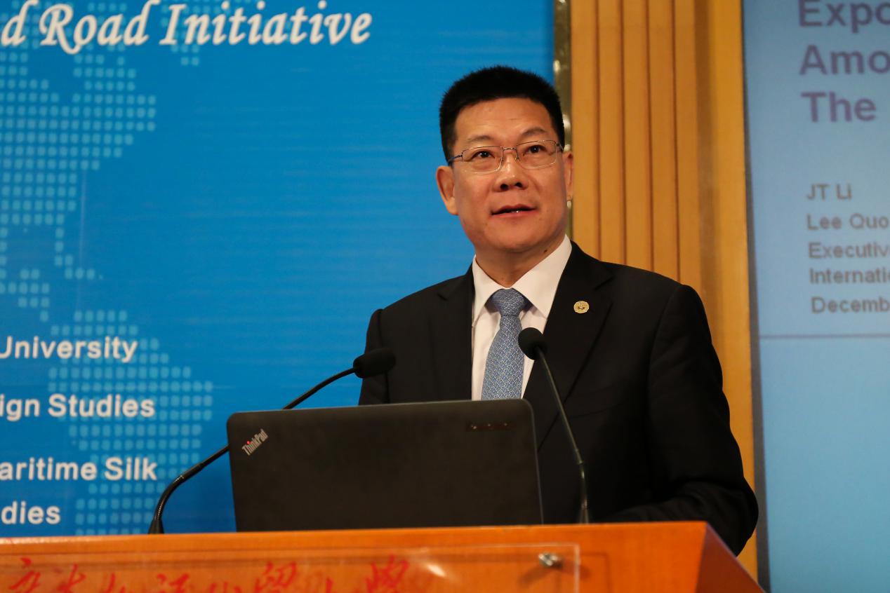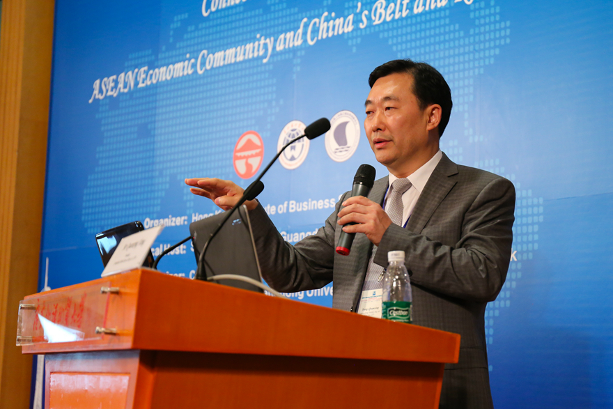 接着,国际商务学会东南亚分会主席崔耕致辞。他介绍,此次年会是十六年来第四次在中国举行,自2015年年会以来,分会管理人员从六人增加到九人,选拔及继任机制也在不断完善中。放眼全球,英国退欧、美国大选等一系列事件体现了部分国家人民对全球化的忧虑及孤立主义的观点,然而亚洲(尤其是东南亚)国家的联系与合作更加紧密,此次年会以“连接与繁荣:东盟经济共同体与中国'一带一路'”为主题,非常契合当前国际形势发展的需求。最后,他代表所有与会嘉宾向广东外语外贸大学(尤其是商学院会务组)、演讲嘉宾、论文评审等所有相关人员的努力付出表示衷心的感谢。