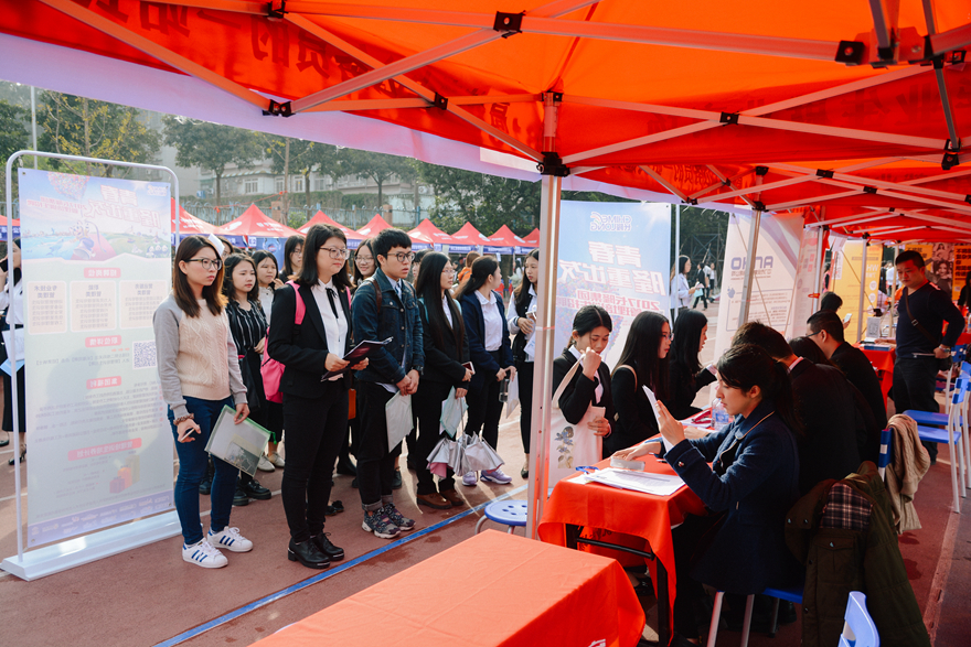 本网讯 12月4日上午,由省教育厅主办,我校承办的广东省2017届高校毕业生外语、外贸、涉外、管理类专场供需见面活动在我校白云山校区田径运动场举行。本次供需见面活动有近250家用人单位进场,提供就业岗位近5000个,涵盖外语类、外贸类、经济类、管理类、计算机类、营销类、教育类、法学、新闻、广告等专业,吸引了省内各大高校的毕业生前来求职应聘。学校启用新开发的智能辅助就业平台,为本场供需见面活动提供服务,极大地提高了工作效率。