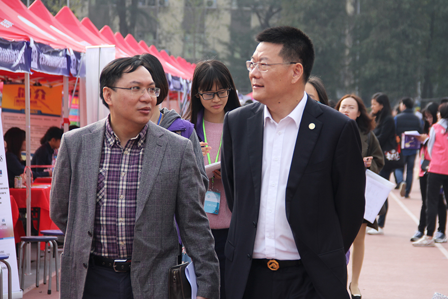 我校校长仲伟合与副校长刘海春到现场指导。仲伟合与一些毕业生和部分企业进行了交谈,了解毕业生面试的情况,并祝福他们面试顺利。同时他也向即将毕业的同学提出建议:要尽早做好人生和职业的规划,向着自己的目标努力。刘海春强调,选择心仪的企业时,最重要的是要明确人生发展目标定位和职业理想,要做到“人职匹配”,盲目将薪水作为选择的标准是众多毕业生求职的误区。