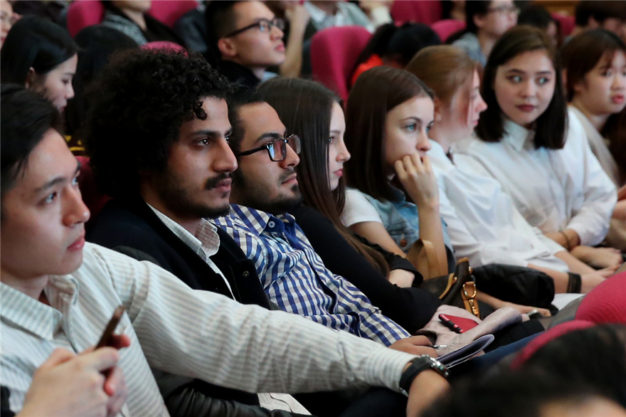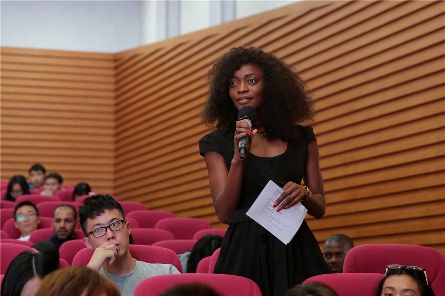 互动环节中,中外学生都积极发问,教授回答精彩,赢得了满堂喝彩。例如关于“在日常生活中,中国人是如何践行他们的价值观的”这一问题,於贤德引用了孔子赞颜回的话“一箪食,一瓢饮,在陋巷,人不堪其忧,回也不改其乐”来生动诠释了为了道而奋斗的自我实现形式。而在回答“在中英价值观交流过程中是否有一方要牺牲部分观念去融合另一方”时,Stephen认为现在倡导的是互荐互学方式,不但不用抛弃主体特色,还要坚持本体特色。於贤德提出,价值观的不同是由于历史和政治制度不同,所以两国应互相尊重,互相借鉴。