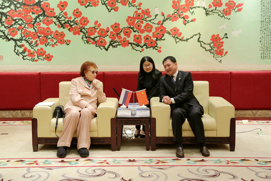 隋广军对维尔比茨卡娅一行的到来表示欢迎,并介绍了我校的基本情况。他指出,我校是一所国际化特色鲜明的高水平大学,基本实现教师国际化、学生国际化和科学研究国际化。同时,学校的科学研究水平及社会服务能力也在不断提高。他表示,由俄语世界基金会资助建立的俄语中心为我校人才培养提供支持,推动我校对俄罗斯的进一步研究。