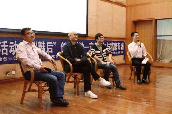 本网讯 11月3日晚上,商学院2016“就创”系列活动之“韩后”创业课堂——“产品定位与精准营销”在图书馆报告厅举行。此次讲座邀请了韩后总裁肖荣燊、MBA华南联盟主席徐健君、兼职猫创始人古琦先作分享,我校副校长刘海春,商学院党委书记许志超等出席本次活。