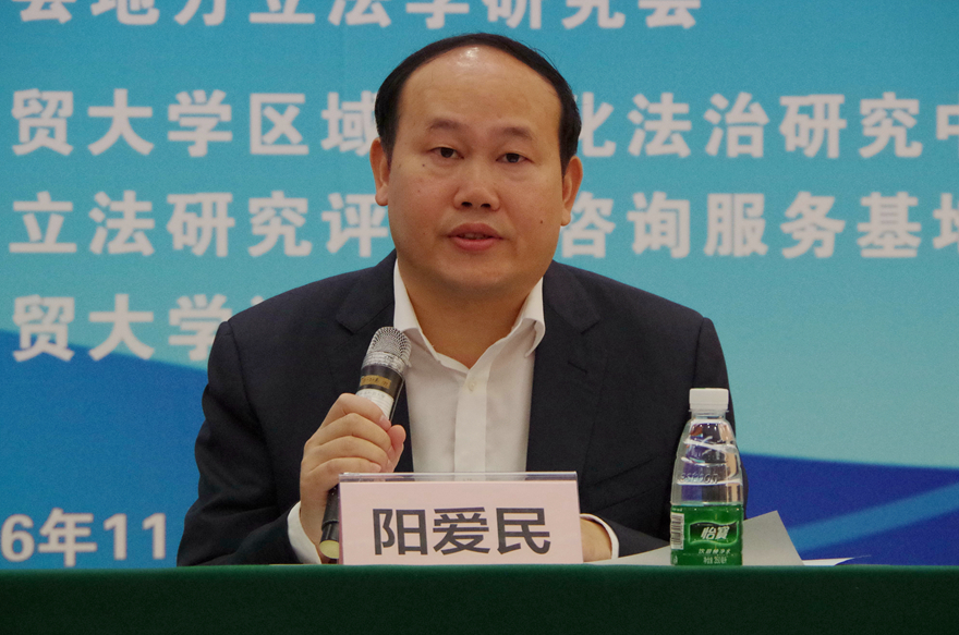 阳爱民简要介绍了我校法学院的发展情况和对地方立法研究工作的配合与支持。他强调,2016年是“十三五”规划的开局之年,也是贯彻落实五大发展理念,全面推进依法治国的关键时期。随着地方立法权的扩大,广东省也迎来了地方立法的高潮,应加大对地方立法研究工作的力度,广聚人才,促进地方立法研究科学发展、创新发展。