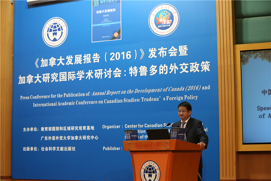 阳爱民在致辞中肯定了《加拿大发展报告(2016)》对中加关系发展的重要意义,他提到,2014年我校在国内建立了多所中加研究机构,就加拿大国内政治发展、外交事务、经济管理新闻企业、环境管理等问题进行了重点示范性研究,研究成果在国内产生较大反响,受到政府和各届媒体的关注。