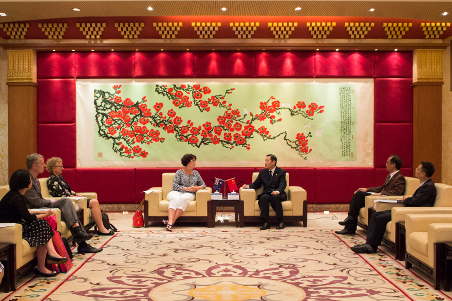 本网讯 10月25日下午,澳大利亚麦考瑞大学副校长妮可·布里格来访我校,同行的还有麦考瑞大学人文科学学院副校长琳达·耶茨、全球合作与商务发展部主任大卫·哈里森,以及大中华地区区域主任斯特拉·王和大中华地区区域经理简·黄。