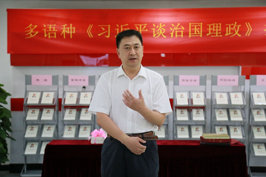 “这本书为了解一位领袖、一个国家和一个几千年的文明打开了一扇清晰而深刻的窗口。”隋广军引用美国前国务卿亨利·基辛格对《习近平谈治国理政》的评价,阐释该书多语种版本的出版发行,对于对外推广“中国故事”“中国理念”的重要意义。自2014年10月在法兰克福国际书展首发以来,《习近平谈治国理政》受到国际社会广泛关注,全球发行537万册,创下了改革开放以来中国国家领导人著作海内外发行的最高纪录。他表示,此书的到来“恰逢其时”,为我校师生带来“雨露甘霖”;此书揭示了在国际错综复杂的环境下如何推进我国的进步与发展,有助于世界了解中国的模式与理念。他希望我校学生在学习科技文化知识的同时,也要认真学习习近平治国理政的新理念新思想新战略,多了解我们的领导人如何率领全国人民实现中华民族的伟大复兴,为我校实现国际化特色鲜明的高水平大学的目标不断奋斗。
