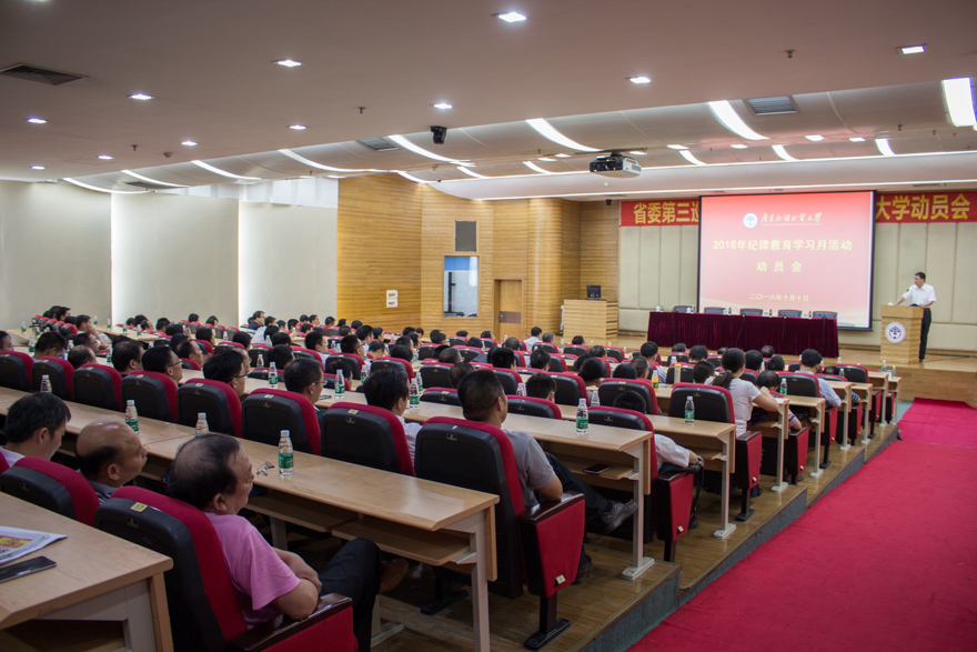 本网讯 根据省纪委关于2016年我省开展纪律教育学习月活动的意见精神,10月10日下午,我校于北校区图书馆报告厅召开了2016年纪律教育学习月活动动员会。会议由我校党委书记隋广军主持。校领导,校党委委员,纪委委员,正副处职(级)干部以及学校重点领域、重点岗位的科级干部等共200多人参加了会议。