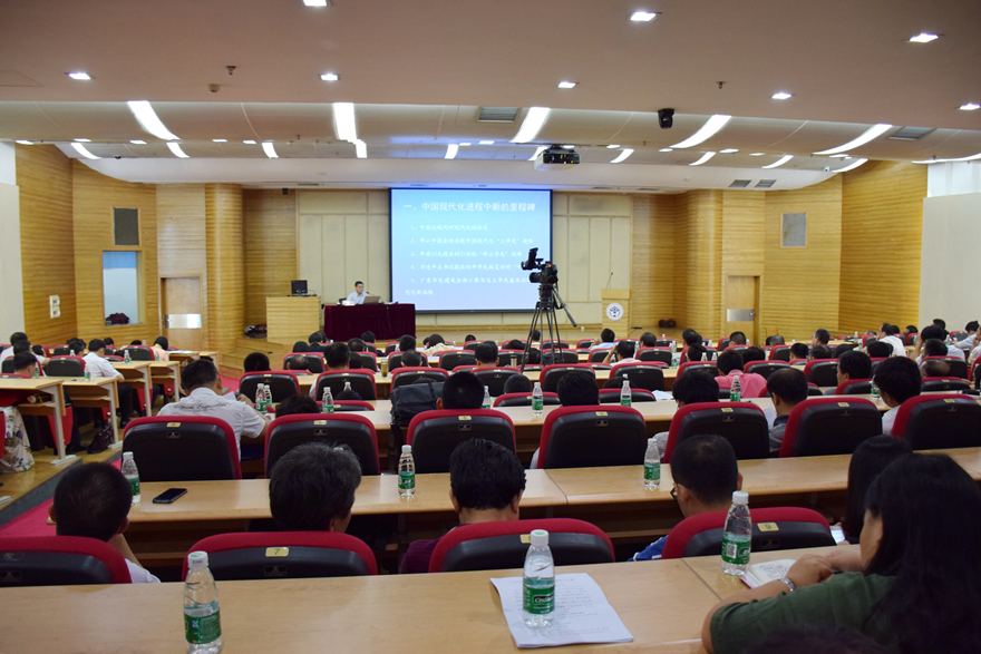 汪一洋的报告“以新理念引领新发展——关于树立创新、协调、绿色、开放、共享的发展理念”为主题,以学习贯彻五大发展理念为基本点,从“中国现代化发展进程”“坚持五大发展理念”“‘十三五’时期发展面临的挑战”“广东‘十三五’发展的着力点”四个方面对治国理政新理念新思想新战略进行深刻的阐述。