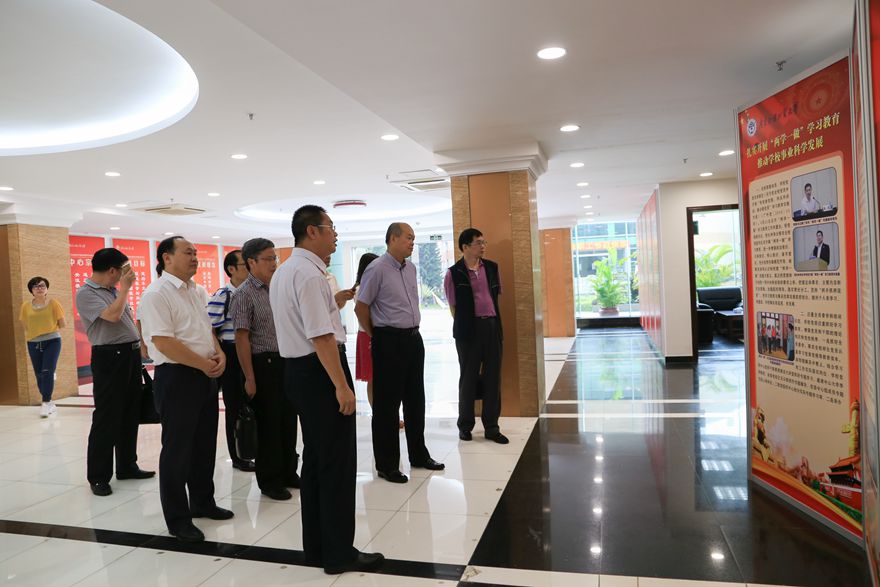 我校副校长阳爱民等陪同卢景辉一行实地参观我校的党代表工作室、统战会议室及教师发展中心。我校党委组织部部长方迎生向来宾展示我校落实“三严三实”、“两学一做”的党建工作成果及团结多民主党派的统战工作成果。教师发展中心主任孙远雷详细介绍了中心的工作经验和取得的工作效。