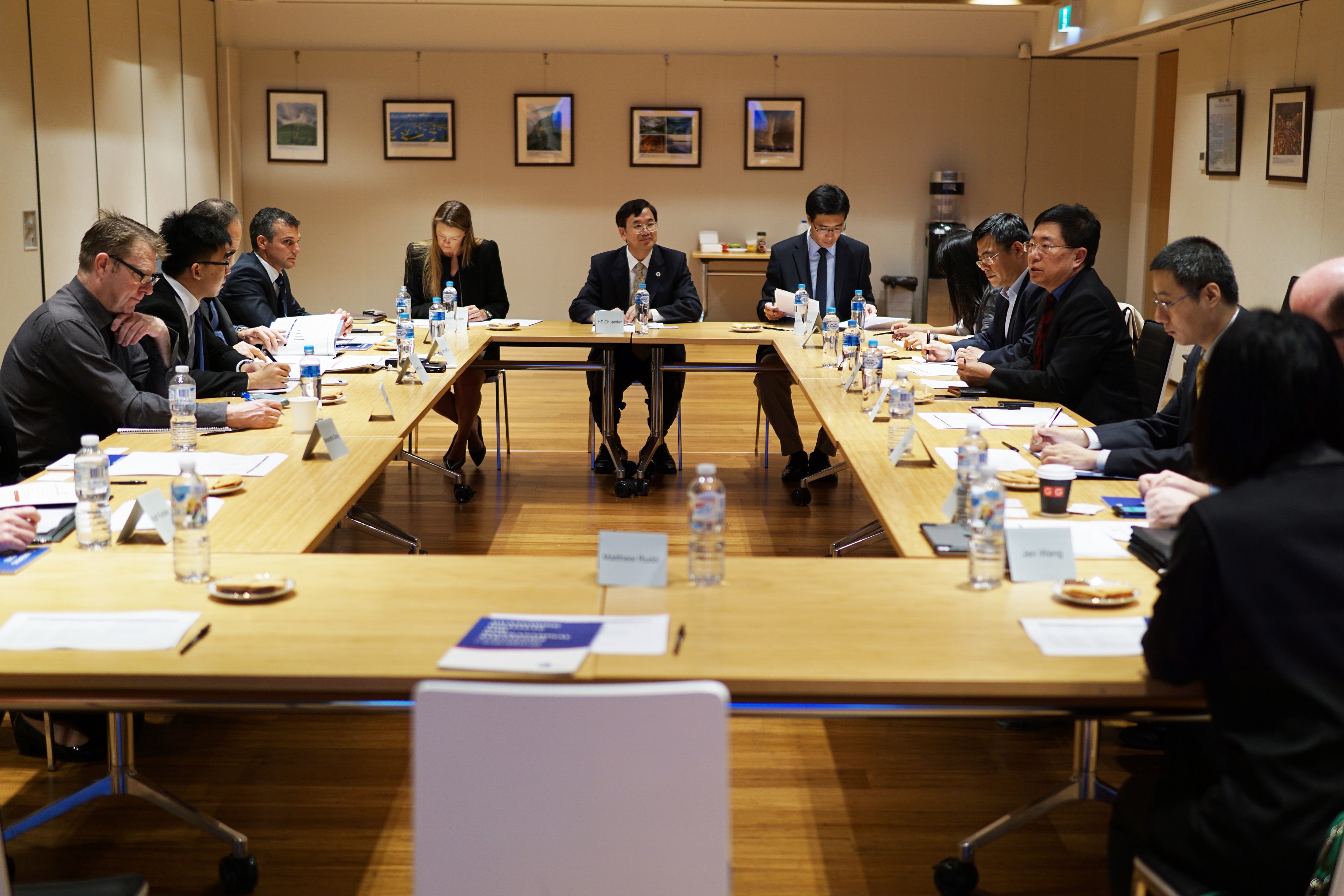 7月22日上午,调研团来到新西兰外交贸易部,同外交贸易司司长Rupert Holborow,北亚司政策官员Luke Gaskin以及欧洲司首席顾问Jocelyn Woodley进行了会谈。双方就中新自贸区升级版以及即将召开的G20峰会相关内容进行了深入探讨。随后,调研团来到维多利亚大学当代中国研究中心,同研究中心主任薄智跃等就“一带一路”倡议在澳大利亚的推广及南海问题进行了讨论。
