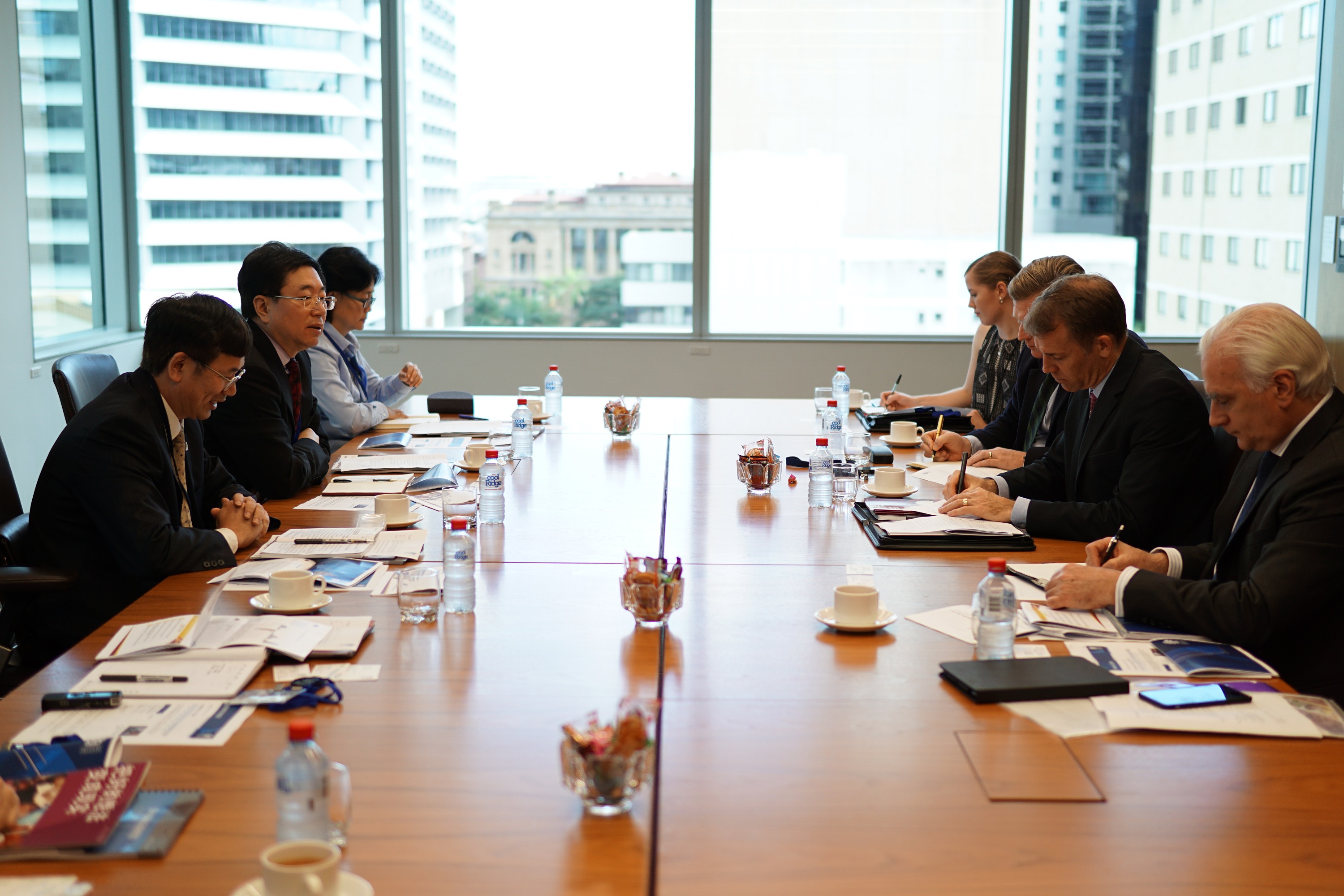 7月20日下午,调研团来到昆士兰州贸易投资局,同昆士兰财政部执行财长Warwick Agnew、贸易投资局行政办公室执行总经理Richard Jackson、商务拓展署Lincoln Parker进行了会谈。Warwick Agnew首先介绍了昆士兰地区的经济态势以及昆士兰基础设施建设和北部开发规划。随后,双方就我国参与昆士兰基础设施建设的方式交换了意见。