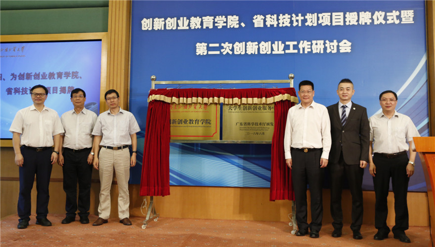 郑文、中国青年政治学院原副校长李家华、广东龙康医药有限公司总经理董靖、仲伟合、刘海春、刘建达共同为创新创业教育学院、广东省科技计划项目——大学生创新创业服务中心揭牌。仲伟合、刘建达为创新创业教育教学指导委员会校内外委员颁发聘书。就业指导中心主任、创新创业教育学院常务副院长谢秀兰代表学校与校外创新创业实践基地建智控股集团、广州智树科技有限公司、广州云山会馆酒店管理有限公司、广州桃源创业孵化器有限公司、广州市青年就业创业服务中心签约。
