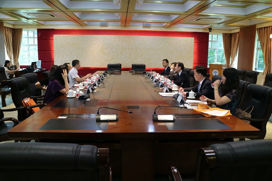 会见后,双方在行政楼第一会议室洽谈合作具体细节。会谈由方凡泉主持。方凡泉介绍了我校英语及其他专业发展状况和留学生教育事业的历史。留学生院院长梁学宏则对招生项目、课程设置等进行了详细解说。袁国明介绍了香港明爱屯门马登基金中学的基本情况,提出为打造“一带一路”新型人才共同努力。巩万说明了香港学生在大陆学习的困难且提出建议。双方进行了热烈的交流,就招生相关事宜达成了高度一致。
