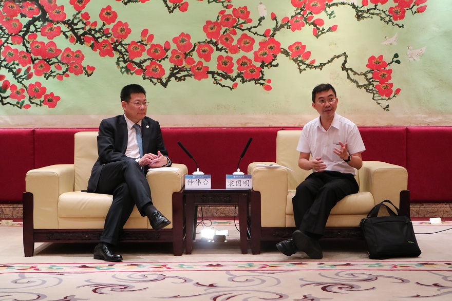 在交谈中,袁国明对我校的留学生人才培养模式和专业课程设置表示赞赏,并表达了与我校交流合作的期盼。他说,广外是一所开放性很强的大学,希望今后能够进行良好的交流与合作。