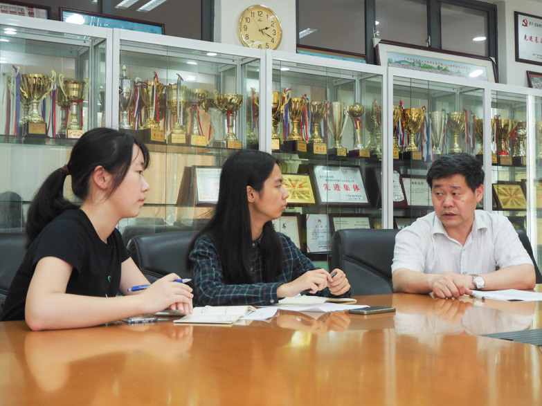 思科信息学院院长蒋盛益(右一)接受记者采访