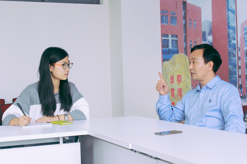 法学院院长胡充寒(右)接受新闻网记者采访