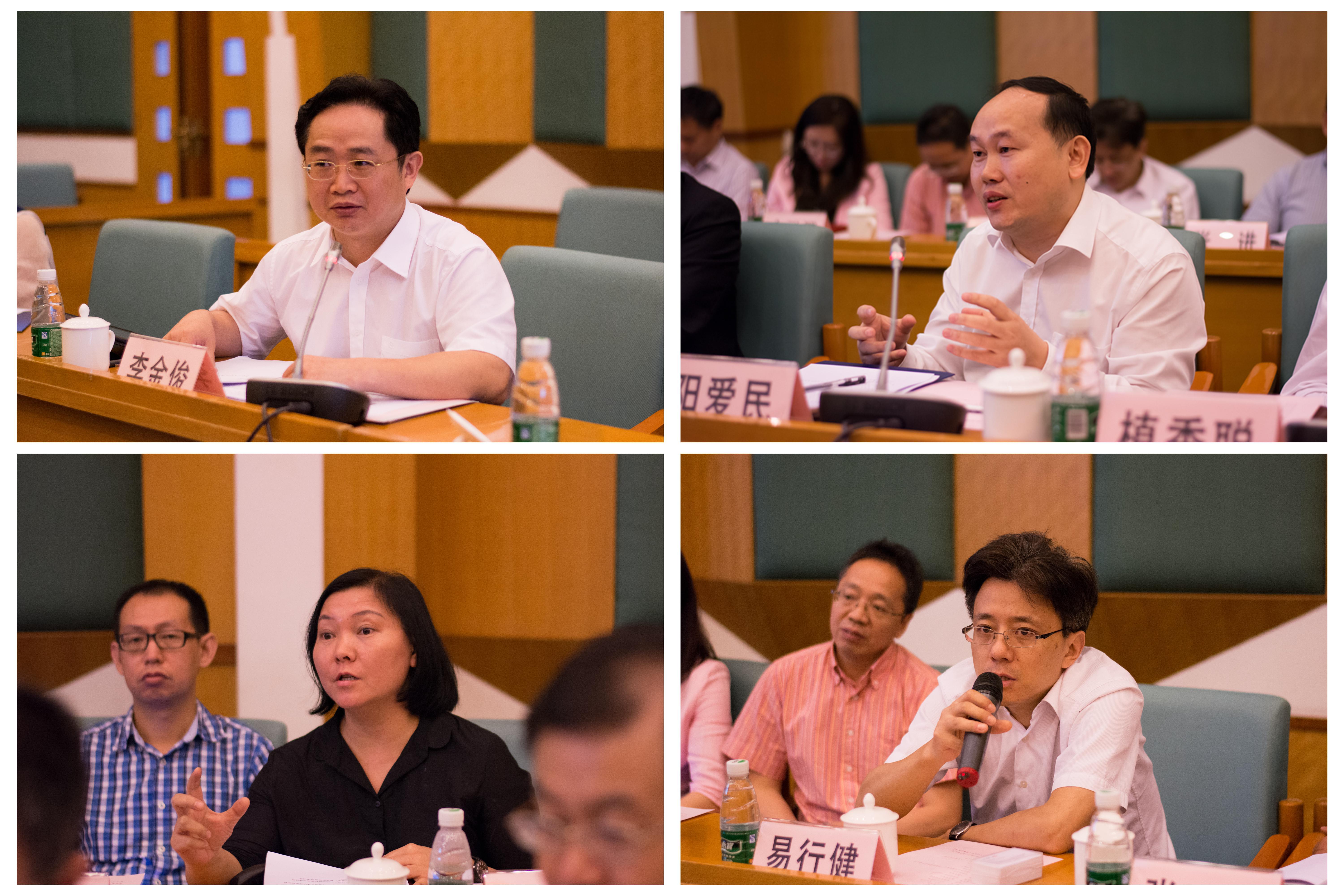 仲伟合汇报了学校开展高水平大学重点学科项目建设的情况。2015年我校两个学科群入选广东省高水平大学重点学科建设项目以来,学校根据省委省政府建设高水平大学的相关精神,以打造国内一流、国际知名学科为核心,以立德树人为根本,以支撑国家尤其是广东实施创新驱动发展战略、构建对外开放新格局为导向,深化人才培养机制、人事体制、科研体制等重点改革,注重加强项目建设管理,强化资源资金统筹,在学科建设、重点人才队伍建设、科研创新、服务社会和国际交流合作等方面取得了阶段性建设成效,为建设国际化特色鲜明的高水平大学提供了强有力的学科支撑,为广东经济社会发展作出了应有的贡献。