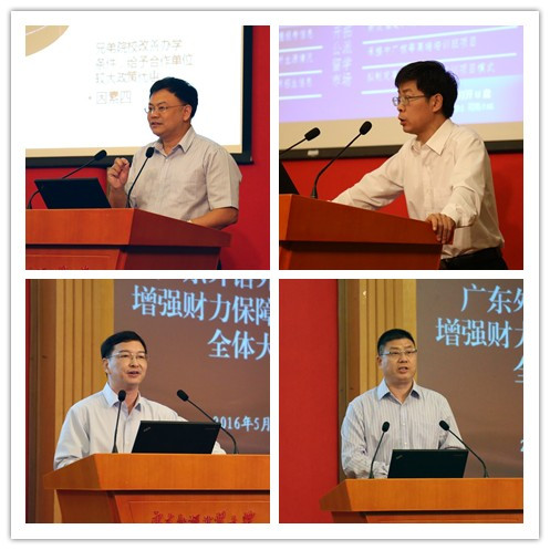 仲伟合在报告中科学地分析了当前学校财力保障工作面临的形势和创收工作的现状并指出,我校创收项目品牌优势受到冲击,部分项目可持续发展能力不足,项目结构需进一步优化。他同时从“创理念之‘新’”“借改革之‘风’”“扬国际化之‘长’”“行育人之‘实’”四个方面把握开拓财源的新机遇。在阐述落实财力保障的新措施时,他强调,要充分理解好和运用好中央、教育部和广东省有利于高等教育发展的相关政策措施,“创新体制机制,提高品牌优势的‘转化率’”“实现精准管理,扩大创收项目的‘占有率’”“把握市场需求,提升办学单位的‘产出率’”“健全理财机制,确保学校资金的‘使用率’”。他号召大家认清财力形势,找准财力保障抓手,为学校的科学发展提供更有效的财力保障。