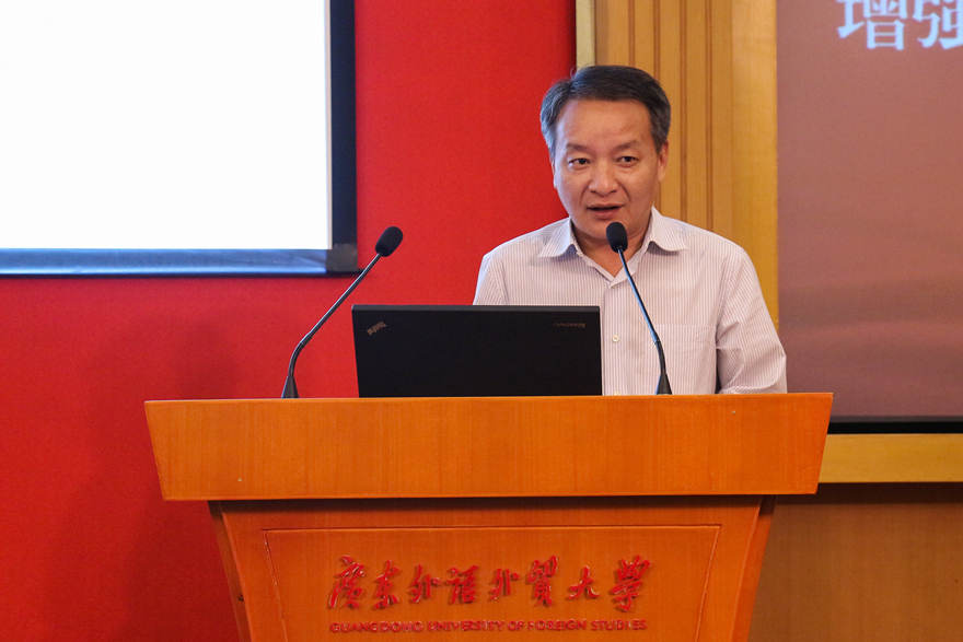 本网讯 5月5日,我校在北校区国际会议厅召开广东外语外贸大学增强财力保障工作会议。全体会议上,校长仲伟合、副校长陈林汉分别做了题为《强化品牌特色 注重优质高效 切实提高学校的财力保障水平》和《多措并举抓财力 齐心协力强保障》的主题报告。校领导,各单位行政主要负责人和财务“一支笔”、校财经工作领导小组成员、预算与投资委员会成员及相关人员参加了此次会议。会议由校党委副书记石佑启主持。