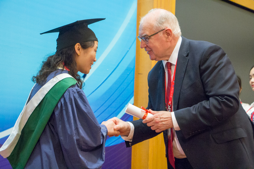 在悠扬的音乐下,在中英两校领导与教师的见证下,艾伦为毕业学员颁发了证书。