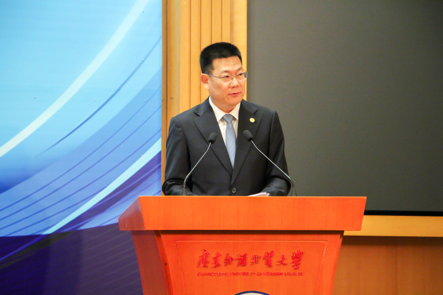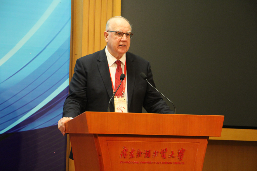 仲伟合在致辞时首先表达了对利兹项目第十届学员们顺利毕业的祝福。利兹教育项目于2002年启动至今已已成就了十届优秀毕业学员。利兹大学是一所拥有光辉的百年历史的英国顶尖大学之一,有着丰富的对外合作与国际办学经验。而广东外语外贸大学英语语言文化学院在语言学及应用语言学研究方面享誉海内外,其语言学及应用语言学研究是迄今为止中国在上述领域唯一的国家级重点学科。“因此,该项目可以说是强强联合,双方优秀教师共同努力使学生通过系统学习、训练和具体研究,了解英语教学领域的新理念、新思路、新问题和新方法,提高从事英语教学与研究的能力。”在致辞的最后,仲伟合表达了其对于促进中英友好合作的期望以及对于利兹项目的赞赏。