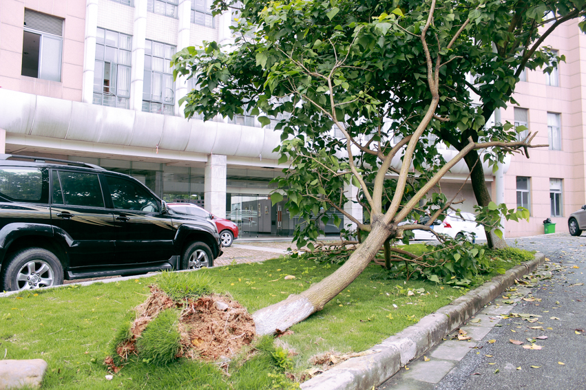 沿路树木树枝断裂