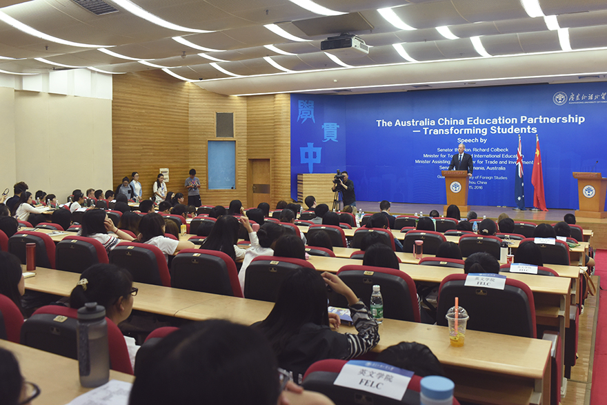 英文报道:Australian Senator addressed GDUFS Students on International Education