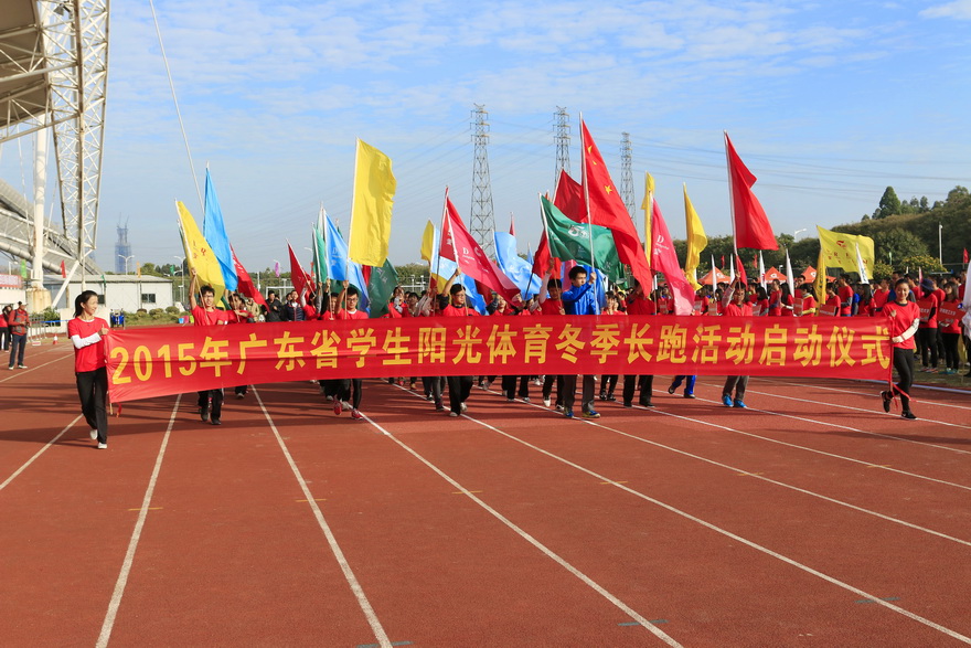 27日早上,首先举行的是2015年省大学生阳光体育冬季长跑活动启动仪式。我校党委副书记卢景辉致开幕辞。他说,阳光体育冬季长跑活动有效推动了学生崇尚运动热爱体育的良好风气的形成,促进学生的健康成长。他鼓励师生们“以饱满的精神投入到这次的冬季长跑活动中,在运动中领略体育运动的魅力”。随后,广东省教育厅体育卫生与艺术处处长许舒翔宣布阳光体育冬季长跑活动正式启动。伴随着充满活力的音乐,由各个学校组成的长跑队伍身着红黄蓝绿各色衣服开始奔跑,瞬间点燃了整个赛场的激情。