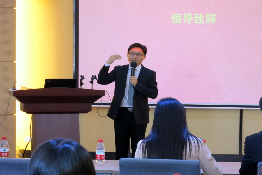 我校外语研究与语言服务协同创新中心副主任葛诗利在致辞中向南方航空公司及我校教务处、学生就业指导中心长期以来给予联合培养项目的关心与支持表示感谢,同时也向联合培养项目首期学员表达了殷切的期望。他表示,广外-南航联合培养项目的实施落地,是我校创新人才培养机制,推进校企协同育人的重要成果,实现了优势互补,强强联合。