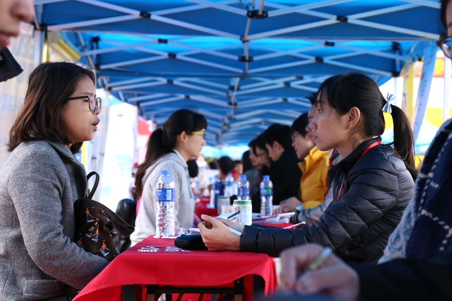 本网讯 12月6日,广东省2016届高校毕业生就业供需见面会(外语、外贸、涉外、管理类专场)在我校北校区田径运动场举行。本次供需见面会由广东省教育厅主办,我校承办。据统计,共有190家用人单位参加现场招聘,提供近4000个岗位,其中近30家教育培训类机构扎堆揽才。