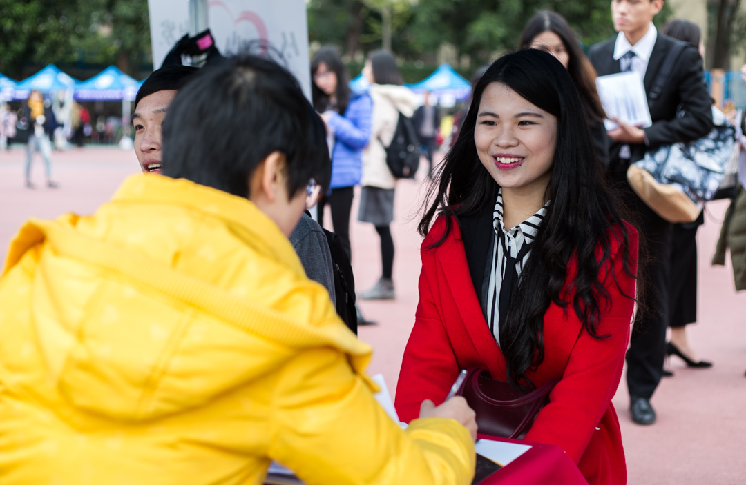 在现场几个吸引力较大的企业中,广州广之旅国际旅行社股份有限公司已经是供需见面会的常客,摊位前排起一条长龙,而艺庭家具有限公司则为前来应聘的学生准备了椅子和凉茶。本次见面会的需求方以英语和外贸类需求为主,因此许多都是全英面试。招聘方表示,出于对一些毕业生心态浮躁的担忧,所以会在面试时问及一些长远职业规划问题。除了专业素养,对应聘者的性格也非常看重,善于沟通的应聘者会在同等情况下更胜一筹。