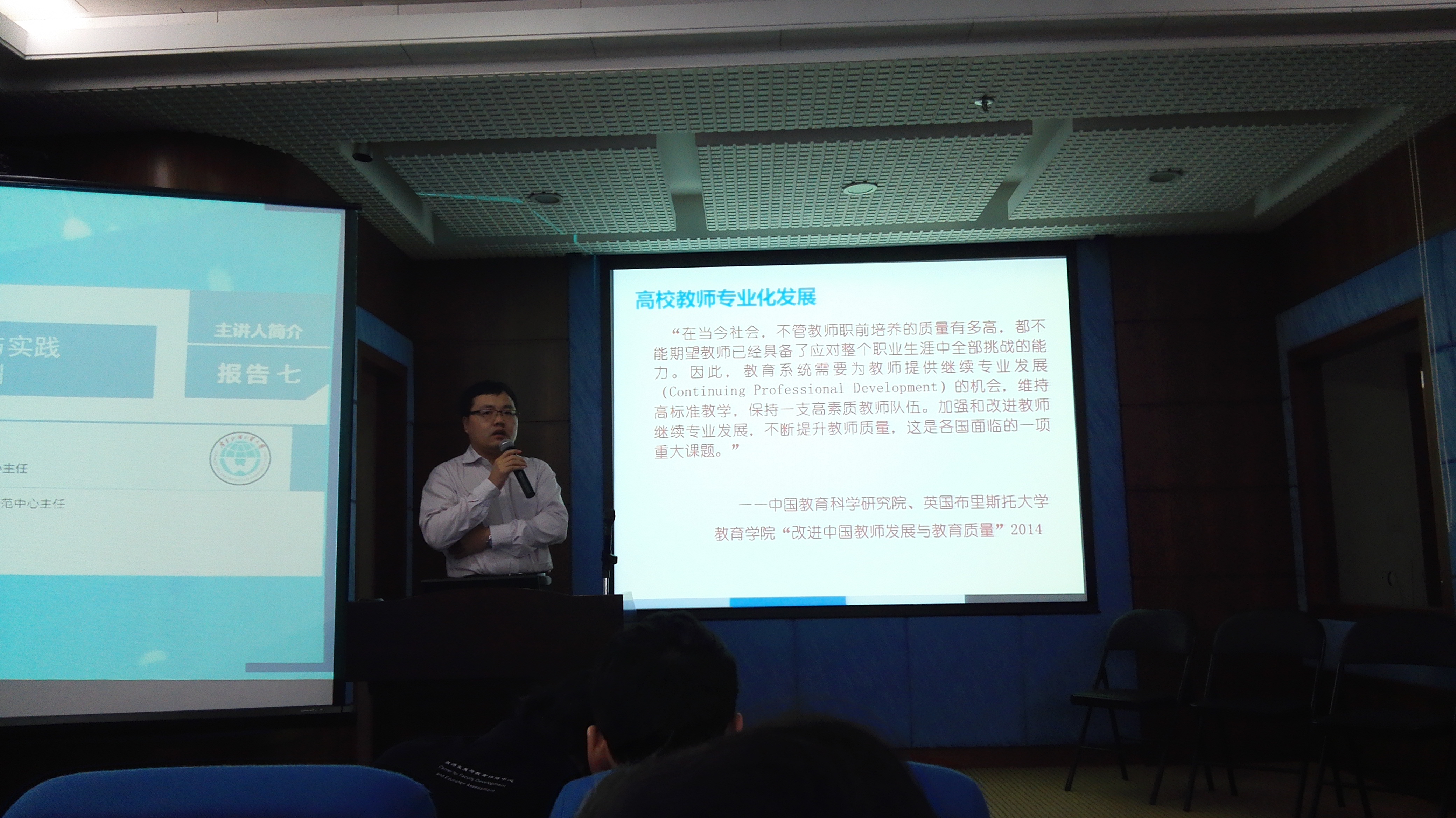 报告会上,教师发展中心主任孙远雷以“高校教师专业化发展的理念与实践——以广东外语外贸大学大学为例”为题,阐述了教师专业化发展及教师发展中心专业化建设的理念,并重点介绍了我校教师发展中心的建设理念、建设机制和项目活动。现场反响热烈,许多学校纷纷表示,希望到广外教师发展中心进行调研和交流。