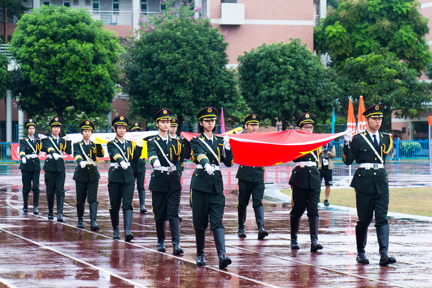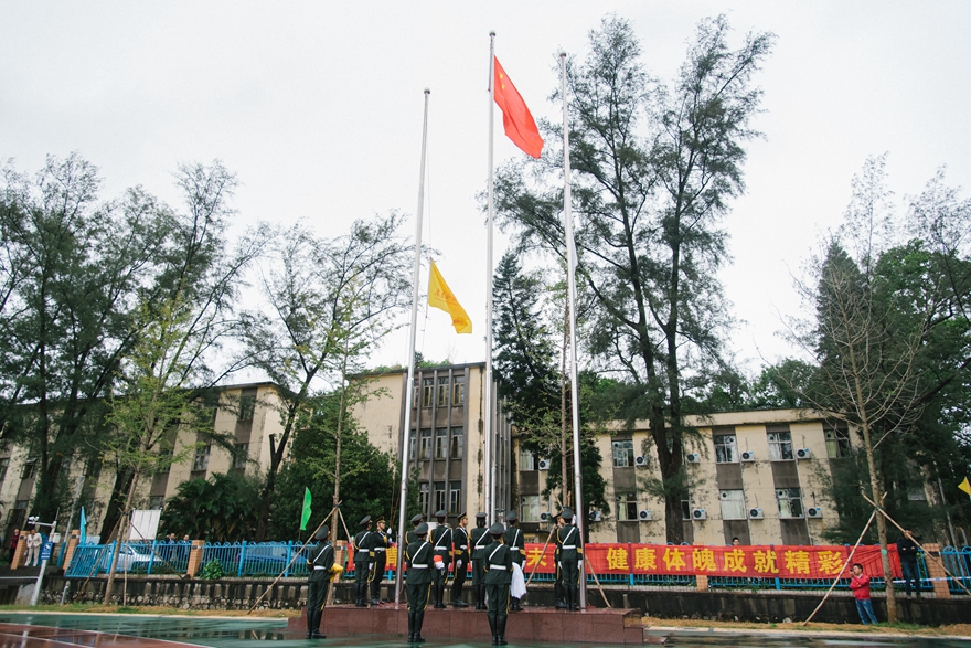 长跑结束后,英姿飒爽的护旗方阵迈着整齐的步伐走进赛场。