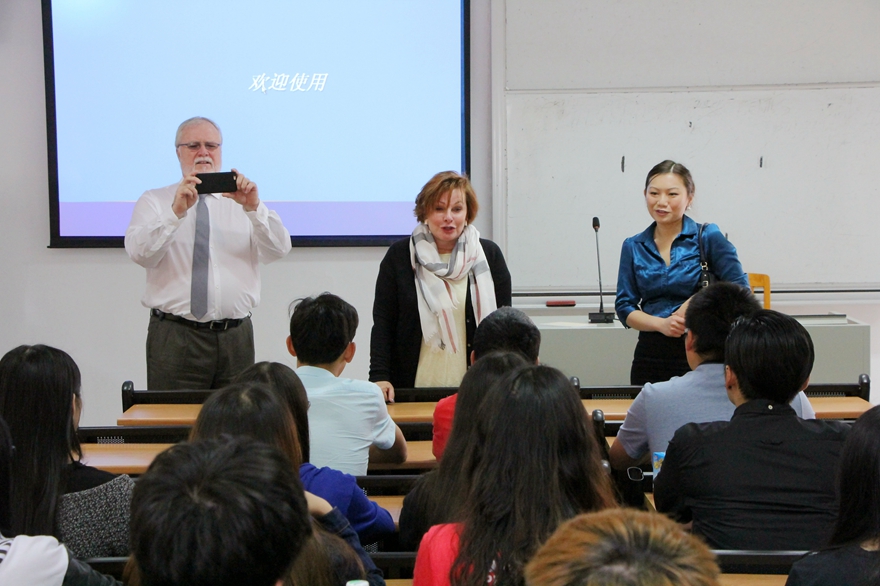 会议结束后,Linda Hepner与国际学院昆特兰理工大学交换项目的学生代表会面,深入课堂与学生们展开亲切交谈。她表达了在我校建校五十周年之际来访我校的荣幸,并对在座学子给予殷切厚望。随后,陈林汉代表我校向来宾赠送广外建校五十周年纪念品,与来访团合影留念。