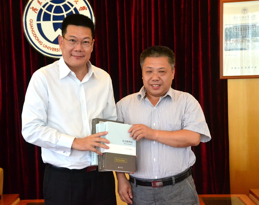郭强向学校和各职能部门细致周到的服务表示感谢,承诺自己将尽心尽力打造好中国马克思研究国际化的团队,讲好中国故事,分享中国经验,传递中国文化,并赠予学校《社会根理论丛书》等著作。