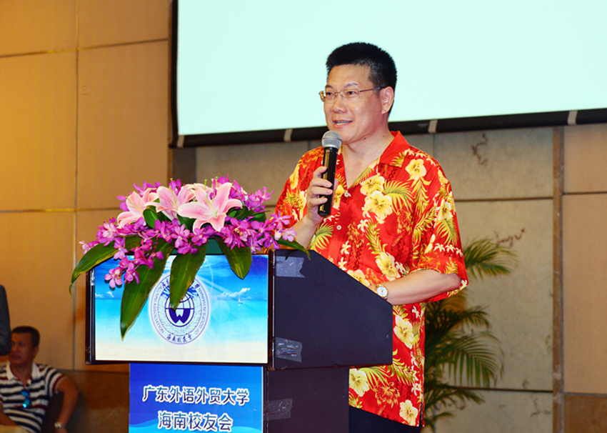广外香港校友会会长梁成锦作为兄弟校友会代表发言,他说:“很高兴来到天之涯、海之角见证海南校友会的成立,非常欣慰能看到校友的情缘遍布天涯海角,祝愿海南校友会越办越好!”