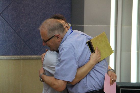 IAFL主席E.Finegan深情拥抱袁传有 感谢他为大会的辛勤付出