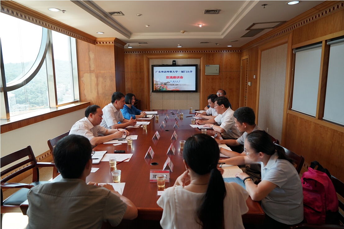 张彦代表厦门大学对我校一行表示热烈欢迎,对海丝中心的规划定位、组织架构、机制体制建设及前期工作成效等予以高度认同与肯定,并对厦门大学与我校协同共建海丝中心充满信心。他指出,“2011计划”是中国高等教育发展新的里程碑,其自身发展正经历从理念到规划、实践的过程。厦门大学的“2011中心”建设工作,尤其是牵头的两个国家级协同创新中心建设工作已经积累了一定的经验。他强调,海丝中心是广外和厦大的共同事业,厦大的工作经验将毫无保留地支持海丝中心建设,希望两校能够在海丝中心的平台上,加强人才、学科、科研更大范围、更大规模、更深层次的协同创新,更好地推动中心建设,取得更大成效。